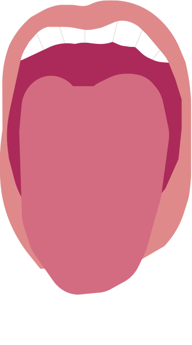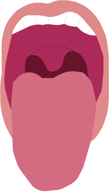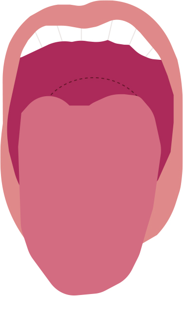 軟口蓋、口狭、口蓋垂(一部)が見える