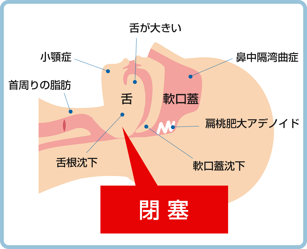 簡単に言うと、睡眠中に呼吸が出来なくなってしまうのは、気道(空気の通り道)が閉塞してしまうからです。