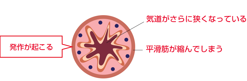 気道が炎症により敏感になっているため、わずかな刺激でも発作が起こってしまいます。